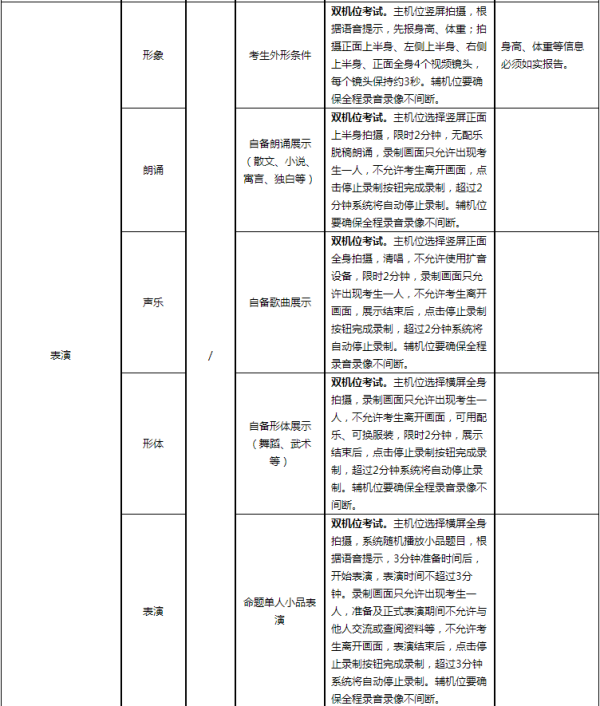 琛ㄦ紨(鑱旇?涓撲笟鑷鏈楄灞曠ず銆佽嚜澶囨瓕鏇插睍紺恒佽嚜澶囧艦浣撳睍紺洪噰鐢ㄧ嚎涓婅冭瘯鏂瑰紡錛岃冪敓欏婚氳繃APP褰曞埗鎻愪氦瑙嗛;鍛介灝忓搧琛ㄦ紨閲囩敤綰夸笅鑰冭瘯鏂瑰紡銆傝冪敓欏繪寜鐓ц姹傚畬鎴愬洓涓鐩殑鑰冭瘯錛屾垚緇╂柟涓烘湁鏁堛?/span>