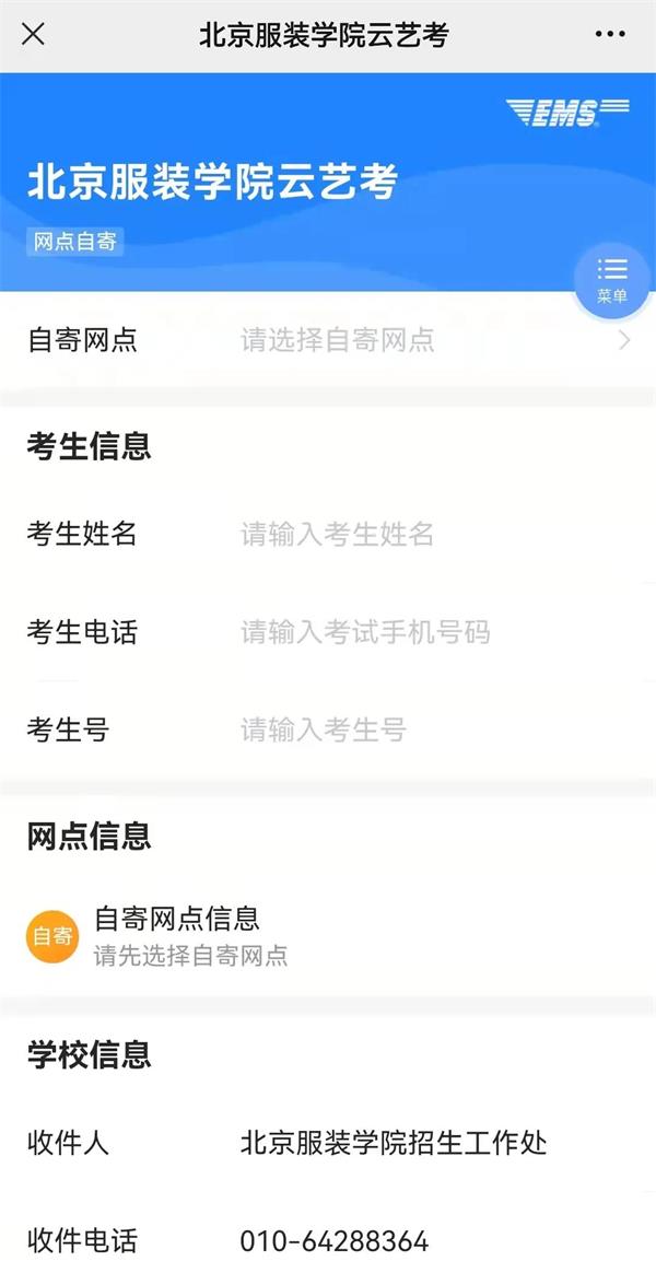 涓銆佽冪敓欏誨湪鑰冭瘯褰撳ぉ 17:00 鍓嶏紝鍔″繀閫氳繃涓浗閭斂 EMS鈥?a style="color:#00F;">鍖椾含鏈嶈瀛﹂櫌浜?a href="http://m.e44ee.com/" style="color:#00F;">鑹鴻?/a>鈥濈郴緇熻嚜璐歸偖瀵勫埌瀛︽牎(鏀朵歡鍦板潃錛氬寳浜競鏈濋槼鍖烘ū鑺變笢琛楃敳2鍙峰寳浜湇瑁呭闄㈡嫑鐢熷伐浣滃錛岃仈緋葷數璇?10-64288364)錛屽瘎浠朵漢濮撳悕鍔″繀鏄冪敓鏈漢錛岃瘯鍗峰寘瑁呴』浣跨敤瀛︽牎鎻愪緵鐨勫寘瑁呯墿錛屽茍璁板綍涓嬮偖瀵勫崟鍙楓傝冪敓鐩存帴鎵弿涓浗閭斂 EMS鈥滃寳浜湇瑁呭闄簯鑹鴻冣濅簩緇寸爜錛岄夋嫨緗戠偣棰勭害鎴栬呭揩閫掑憳涓婇棬鐨勬柟寮忓皢璇曞嵎瀵勫洖銆備竴寰嬩笉鍑嗕嬌鐢ㄤ腑鍥介偖鏀?EMS鈥滃寳浜湇瑁呭闄簯鑹鴻冣濅互澶栫殑鍏朵粬鐗╂祦鍏徃閭瘎璇曞嵎銆?/span>