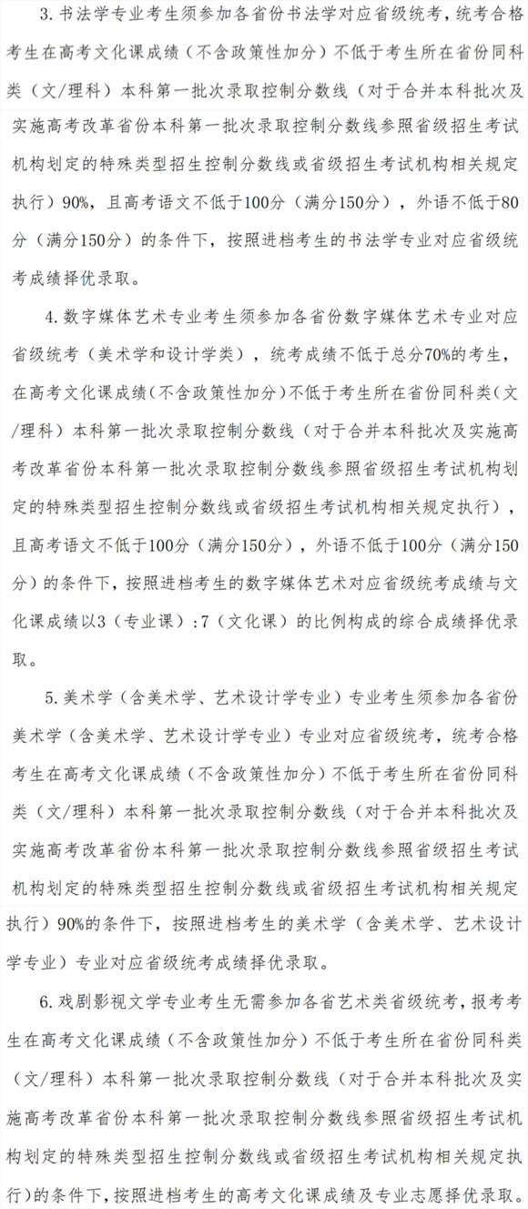 l画、设计学c:文化分须辑ֈ考生所在省(?普通本U第一Ҏ控制分数U?高考综合改革省份参照强划控制分数线)60%及以上,且不低于所在省(?艺术cLU最低控制分数线。我校按公布的招生计划,以专业省l考成l排序,按考生报考专业志愉K序录取?/span>