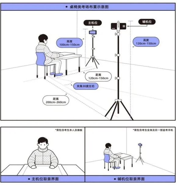 涓ら儴鎵嬫満鎸夌収鎽嗘斁浣嶇疆鍖哄垎涓轟富鏈轟綅鍜岃緟鏈轟綅銆備富鏈轟綅浣跨敤鈥滀紭鑹?鈥滱PP浣嶄簬鑰冪敓鍓?渚ф柟錛岀敤浜庤瘑鍒冪敓鍜岃瘯鍗蜂俊鎭紝騫跺畬鎴愯冨墠嫻佺▼鎸囧紩錛岃冭瘯榪囩▼鐩戞帶錛岃冨悗嫻佺▼鎸囧紩錛屾媿鐓т綔鍝佹彁浜?杈呮満浣嶄嬌鐢ㄢ滀紭宸♀滱PP浣嶄簬鑰冪敓渚у悗鏂癸紝鐢ㄤ簬鐩戞帶鏁翠釜鑰冨満鐜鐩磋嚦璇曞嵎灝佽緇撴潫銆?/span>