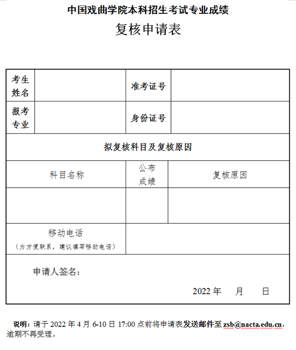 涓浗鎴忔洸瀛﹂櫌鏈鎷涚敓涓撲笟鑰冭瘯鎴愮嘩澶嶆牳鐢寵琛細