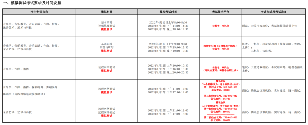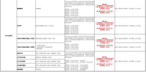 各专业各考试具体模拟试旉、考试旉及各考试腾讯会议号及会议密码Q详见附?《西安音乐学?022q本U招生考试W二阶段W试及面试考试旉安排》?