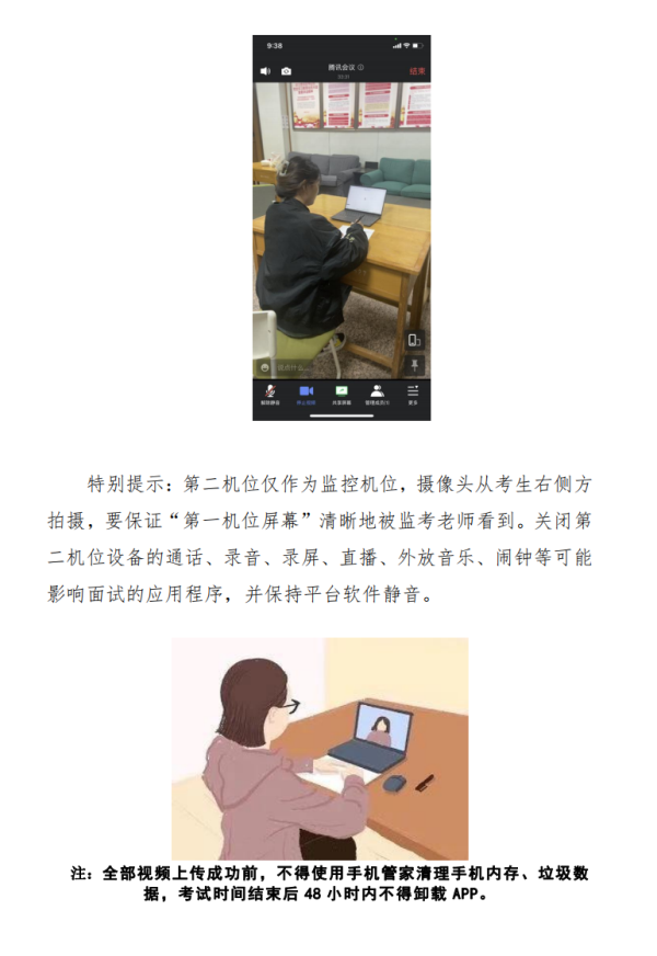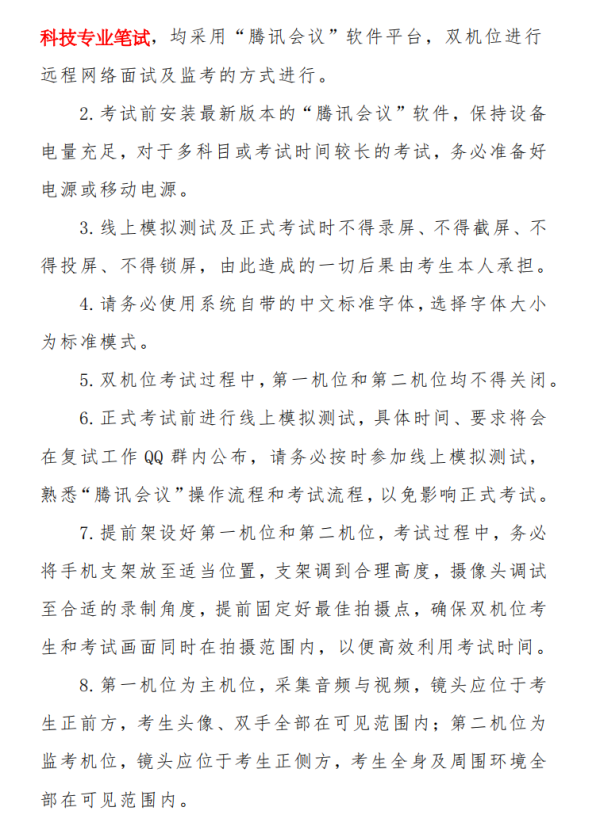 2.录音艺术、艺术与U技(电子音乐作曲、电子音乐制作、钢琴调修、音乐数字媒?、舞y学专业所有初试、复试考试涉及的笔试内容均采用“腾讯会议”Y件^台双Zq行q程W试及监考的方式q行。参加笔试科目考试Q考生M?部智能手机,1部用于正前方获取试题和正前方实时监考,1部用于侧后方q行辅助监考ƈ答h照上传?
