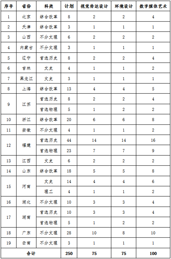 厦门大学创意与创新学?022q招生专业ؓ艺术cM业,不组l专业校考,安排分省分专业计划,面向部分省䆾招生。具体分省招生计划如下: