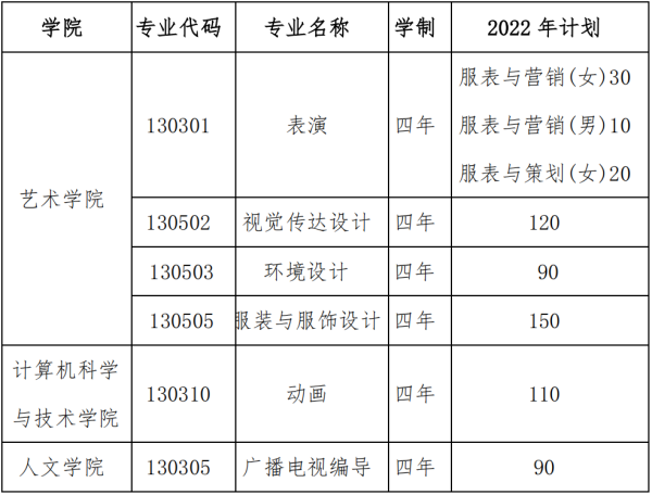 学校2022q设计学c?视觉传达设计、环境设计、服装与服饰设计)总计?60?表演专业计划60?q播电视~导专业计划90?动画专业计划110名?