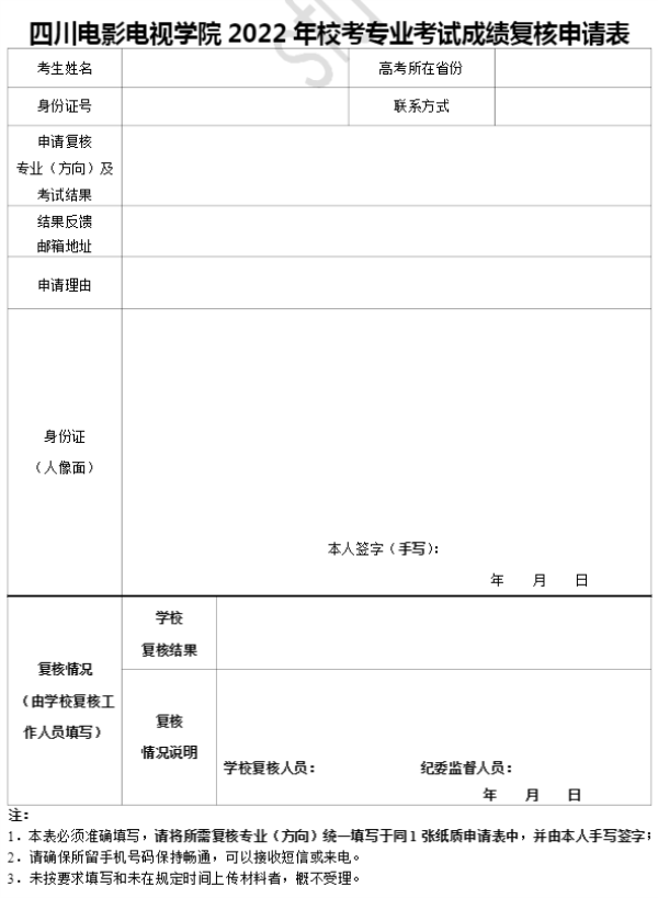 (1)鑰冪敓欏諱笅杞介檮浠訛細鍥涘窛鐢靛獎鐢佃瀛﹂櫌2022騫存牎鑰冧笓涓氳冭瘯鎴愮嘩澶嶆牳鐢寵琛紝鎸夌収瑕佹眰濉啓鎵撳嵃(闄ょ瀛楀錛屽叾浠栬〃鏍煎唴瀹規墜鍐欐垨鏈烘墦鍧囧彲)錛屽鐢熸墜鍐欑鍚嶅悗鎷嶇収浠ラ檮浠跺艦寮忎笂浼犺嚦2306088847@qq.com閭錛岄偖浠朵笌闄勪歡鍚嶇О鏍煎紡緇熶竴涓猴細鑰冪敓濮撳悕+韜喚璇佸彿銆?