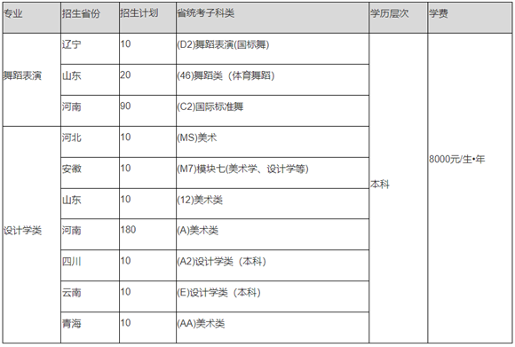 舞蹈表演专业在辽宁、山东、河南招生,设计学类专业在河北、安徽、山东、河南、四川、云南、青h生。具体招生专业、招生计划及省统考子U类如下Q?/span>