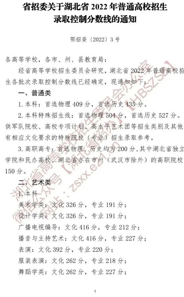 鐜板皢婀栧寳鐪?022騫存櫘閫氶珮鏍℃嫑鐢熼潪緹庢湳綾昏壓鏈笓涓氱粺鑰冨悎鏍兼帶鍒跺垎鏁扮嚎閫氱煡濡備笅: