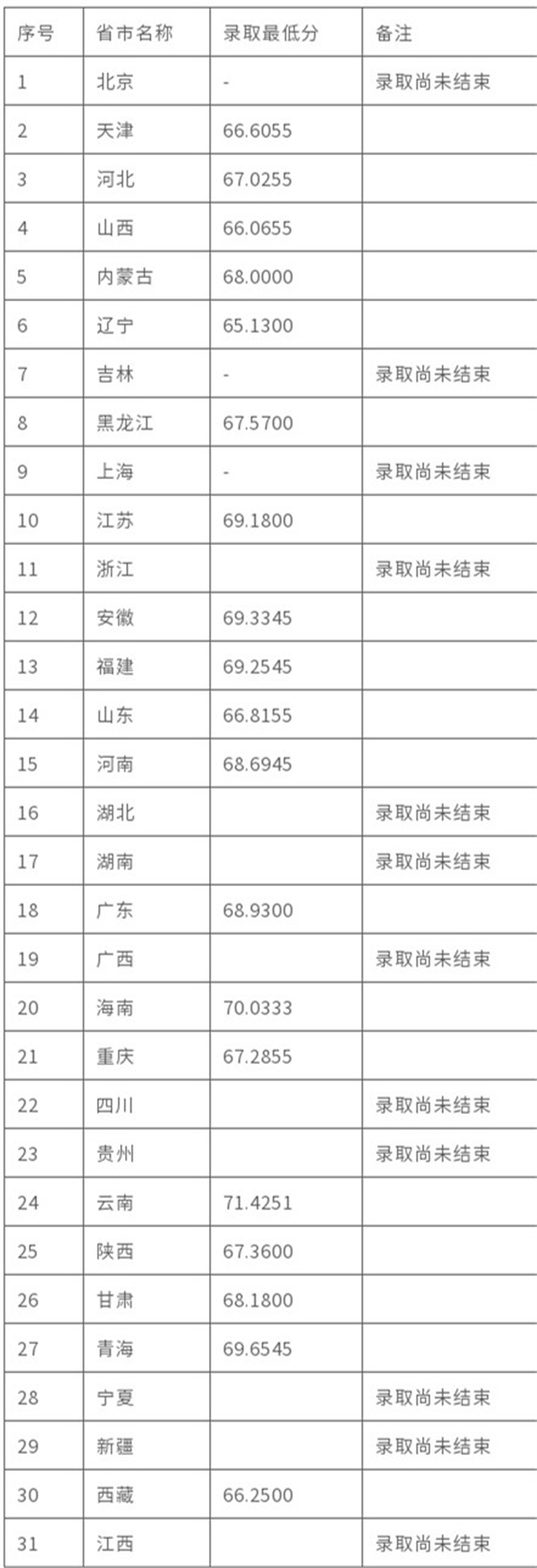 鎴戞牎2022騫寸編鏈笌璁捐瀛︾被褰曞彇宸ヤ綔姝f寜鍚勭渷(甯傘佽嚜娌誨尯)褰曞彇鏃墮棿鏈夊簭榪涜錛岀幇灝嗗凡褰曞彇緇撴潫鐪?甯傘佽嚜娌誨尯)鐨勫綍鍙栨誨垎鏈浣庡垎鍏竷銆?/span>