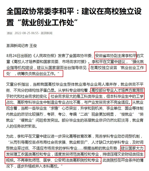 涓烘錛屾潕鍜屽鉤鍦ㄦ枃绔犱腑寤鴻榪涗竴姝ユ繁鍖栭珮絳夋暀鑲叉敼闈╋紝瀹屽杽瀛︾涓撲笟鍔ㄦ佽皟鏁存満鍒訛紝鈥滀粠鑰屽紩瀵奸珮鏍¢噸鐐瑰竷灞紺句細闇姹傚己銆佸氨涓氬墠鏅箍銆佷漢鎵嶇己鍙eぇ鐨勫縐戜笓涓氾紝鍙婃椂璋冩暣灝變笟鐜囪繃浣庛佷笉閫傚簲甯傚満闇姹傜殑瀛︾涓撲笟鈥︹︽牴鎹綋鍓嶇殑灝變笟褰㈠娍錛屽緩璁浗瀹跺ぇ鍔涘彂灞曠悊宸ュ啘鍖葷被楂樻牎鍜屼笓涓氾紝閫傚害鍙戝睍甯堣寖綾婚珮鏍″拰涓撲笟錛屾寔緇帇緙╂枃鍙茶儲緇忕被鎷涚敓瑙勬ā銆備笉鍐嶅鎵瑰笀鑼冦佸尰瀛︺佸叕瀹夊徃娉曠被楂樿亴闄㈡牎鍜屼笓涓氾紝姝ょ被闄㈡牎鍦ㄧ鍚堟潯浠剁殑鎯呭喌涓嬶紝閫愭鍗囨牸鎴栧茍鍏ユ湰縐戦珮鏍°傗?/span>