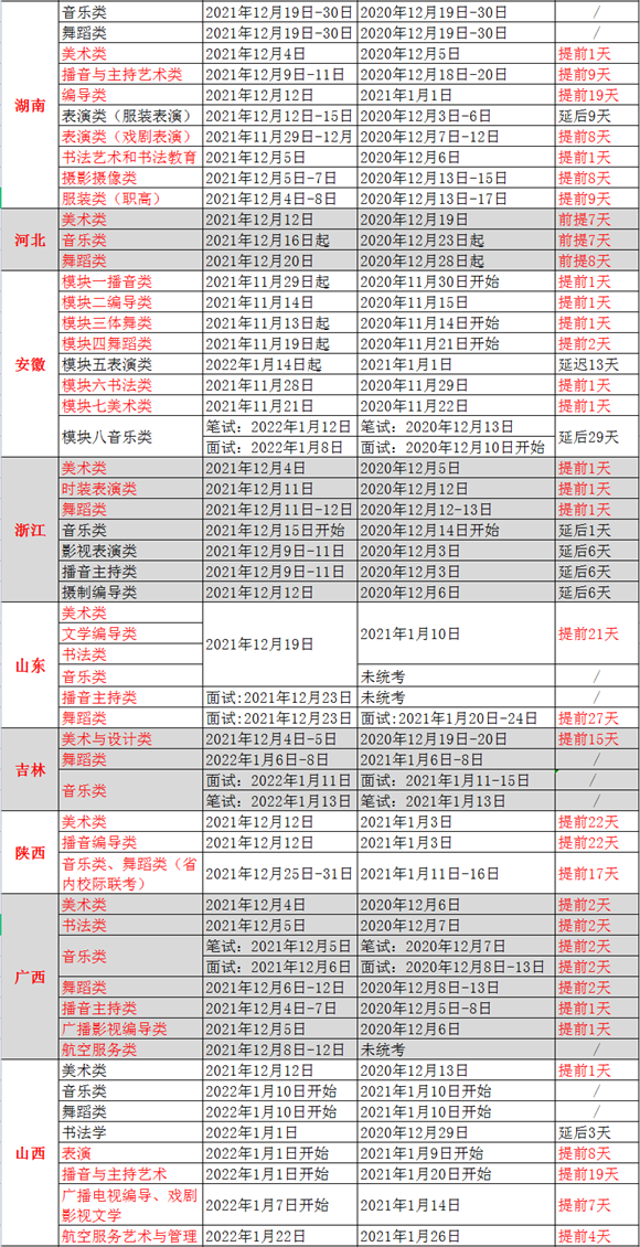 鎵鏈変笓涓氱粺鑰冩椂闂村潎鎻愬墠鐨勬湁娌沖崡銆佸ぉ媧ャ侀潚嫻楓佷笂嫻楓佸唴钂欏彜銆佸洓宸濄佹睙瑗褲佹箹鍖椼佸北涓溿佸悏鏋椼侀檿瑗褲佸箍瑗褲佸畞澶忋佹搗鍗椼佹柊鐤嗙瓑15涓渷浠斤紝浣欎笅浠呮湁涓涓笓涓氬歡鍚庣殑鏈?涓渷浠斤紝鍒嗗埆鏄噸搴嗗獎瑙嗙被寤跺悗浜?澶╋紝灞辮タ涔︽硶瀛﹀歡鍚庝簡3澶╋紝婀栧崡鏈嶈琛ㄦ紨綾誨歡鍚庝簡9澶╋紝姹熻嫃闊充箰綾諱笓涓氬歡鍚庝簡6澶┿?/span>