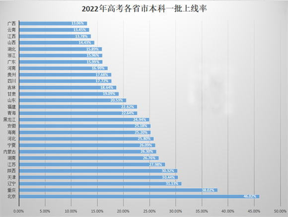 2022騫村叏鍥介珮鑰冩姤鍚嶄漢鏁板杈?193涓囷紝姣?021騫村115涓囷紝涓鏈綍鍙栫巼鏈楂樼殑鏄寳浜負46.02%錛屾渶浣庣殑鏄箍瑗夸負13.06%錛屼竴鏈鉤鍧囧綍鍙栫巼涓?2.95%!