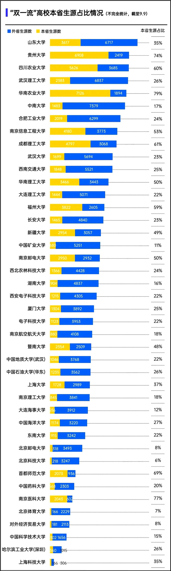 2022騫寸涓騫村叆閫夊弻涓嫻侀珮鏍$殑鍗庡崡鍐滀笟澶у錛屾湰鐪佺敓婧愬崰姣旈珮杈?9%錛屽崡浜尰縐戝ぇ瀛︾渷鍐呯敓婧愬崰姣?7%錛岃吹宸炲ぇ瀛︽湰鐪佺敓婧愬崰姣?4%錛屽洓宸濆啘涓氬ぇ瀛︺?a style="color:#00F;">鎴愰兘鐞嗗伐澶у鍜?a style="color:#00F;">棣栭兘甯堣寖澶у鏈渷鐢熸簮鍗犳瘮閮藉湪60%浠ヤ笂銆?/span>