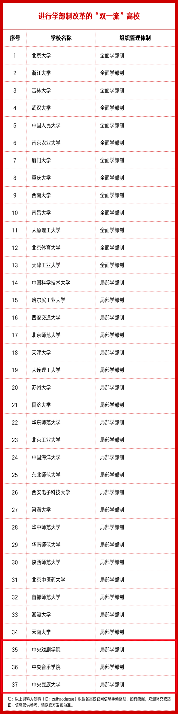 鍖椾含澶у浣滀負鏈鏃╁疄鏂芥敼闈╃殑瀛︽牎錛屽紑鍒涗簡涓浗澶у瀹炶鈥滃閮ㄥ埗鈥濈殑鍏堟渤銆傝嚜1999騫村寳浜ぇ瀛︾粍寤哄閮ㄥ悗錛?a style="color:#00F;">嫻欐睙澶у銆?a style="color:#00F;">姝︽眽澶у絳変竴鎵瑰鏍″厛鍚庤繘琛屼簡瀛﹂儴鍒舵敼闈┿?/span>