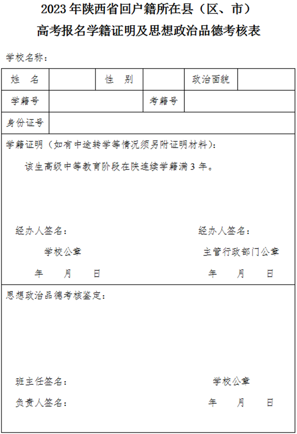 附g1Q?023q陕西省回户c所在县(区、市)高考报名学c证明及思想政治品d考核?/span>