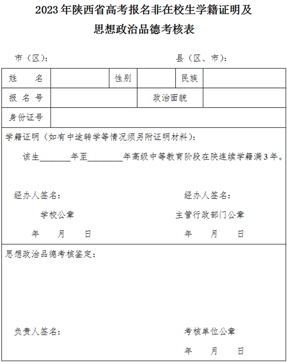 附g2.2023q陕西省高考报名非在校生学c证明及思想政治品d考核?/span>