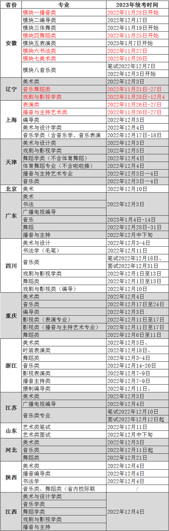 2023届艺术统考时间陆l公布,从已公布?4个省市来看,距离2023q艺术统考最q的仅有不到30天的旉?/span>