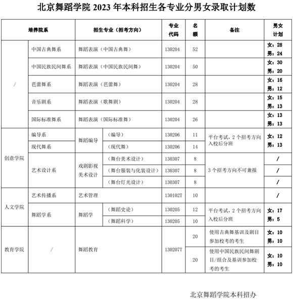 鍖椾含鑸炶箞瀛﹂櫌2023騫存湰縐戞嫑鐢熷悇涓撲笟鍒嗙敺濂沖綍鍙栬鍒掓暟