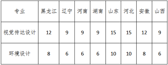 我校2023q视觉传达设计专业招生计?0名,环境设计专业招生计划60名,音乐表演(C)专业招生计划12名,音乐表演(器乐)专业招生计划41名,q播电视~导专业招生计划60名。具体分省分专业招生计划详见下表Q最l招生计?U类)以黑龙江省教育厅批复及各省招生部门公布为准?