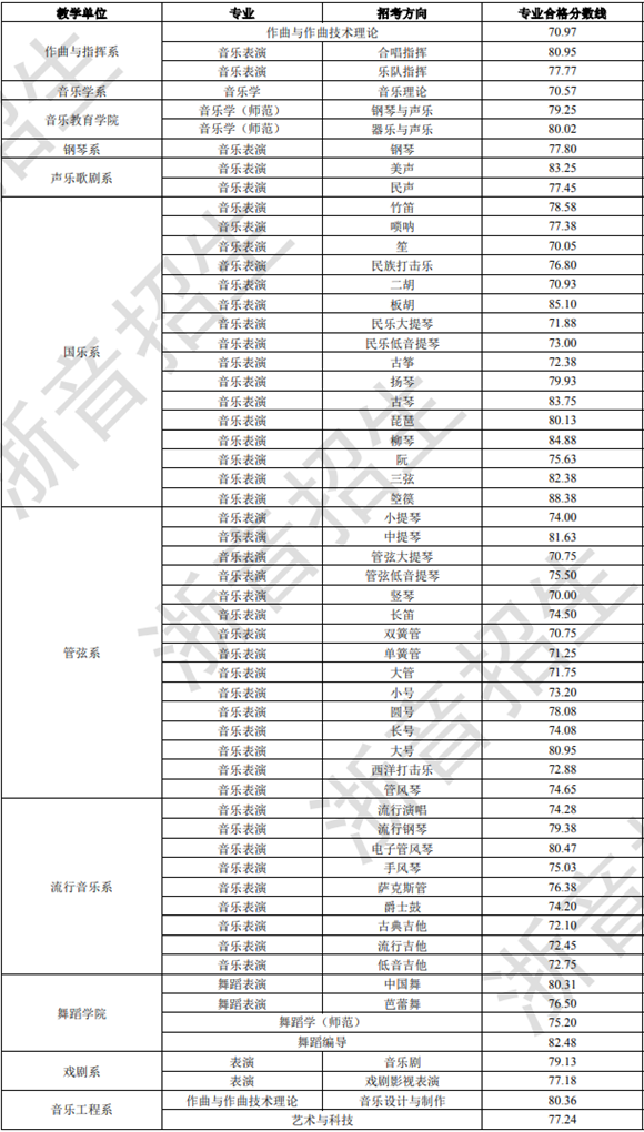 闄勪歡1錛氭禉姹熼煶涔愬闄?023騫存湰縐戞嫑鐢熶笓涓氭牎鑰冨悎鏍煎垎鏁扮嚎