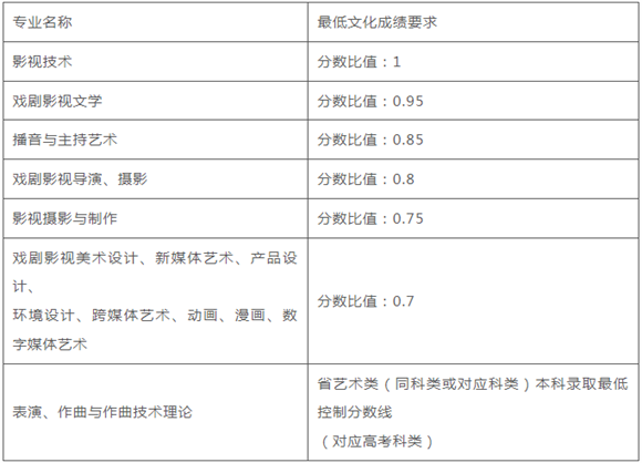 W二c:专业考试合格的考生Q高考文化课考试成W辑ֈ校定分数U后Q按文化课成l与所在省本科一批录取最低控制分数线(文、理)的分数比g高到低排序,择优录取。涉及专业:录音艺术专业、艺术与U技专业、电影学专业、广播电视编g业?/span>
