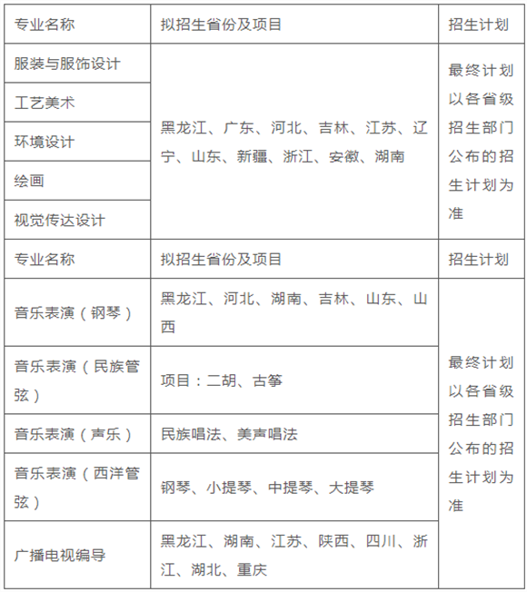 我校2023q艺术类各专业招生计划、招生项目及招生省䆾见下表,最l计划以各省U招生部门公布的招生计划为准?/span>