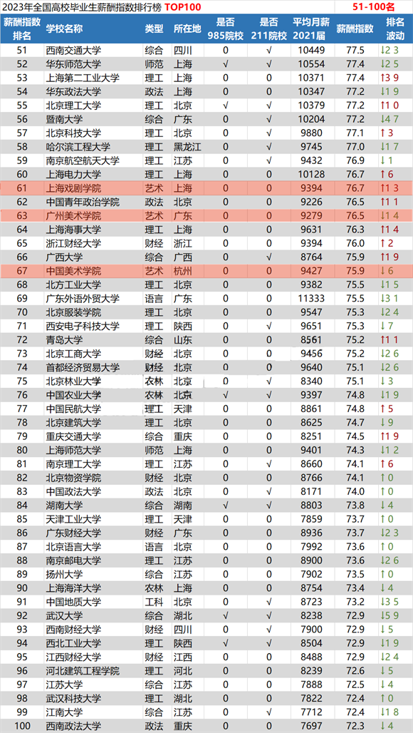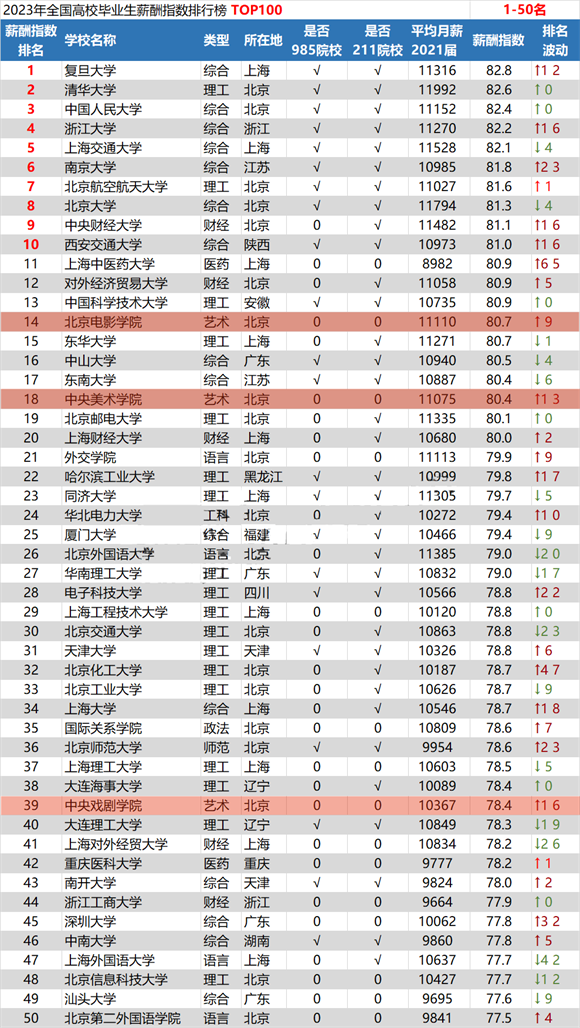 鍦═OP100涓紝鏈?鎵鑹烘湳綾婚櫌鏍★紝鍏朵腑鏈変笁鎵闄㈡牎騫沖潎鏈堣柂榪囦竾鍏冿紝鍒嗗埆鏄?a style="color:#00F;">鍖椾含鐢靛獎瀛﹂櫌錛?021灞婂鉤鍧囨湀钖揪11110鍏?鍏舵鏄?a style="color:#00F;">涓ぎ緹庢湳瀛﹂櫌錛屽鉤鍧囨湀钖揪11075鍏?涓ぎ鎴忓墽瀛﹂櫌錛屽鉤鍧囨湀钖揪10367鍏冦?/span>