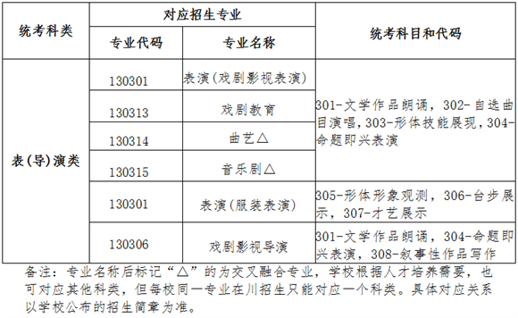 本类考试包括戏剧p表演、服装表演、戏剧媄视导演三个专业方向,其中戏剧p表演考试适用于表?戏剧p表演方向)、戏剧教肌Ӏ曲艺、音乐剧{专?服装表演考试适用于表?服装表演方向){专?戏剧p导演考试适用于戏剧媄视导演等专业。其中曲艺、音乐剧专业属于教育部规定的交叉融合专业Q高校可Ҏ人才培养需要,定与其他省U统考科cȝ对应关系Q用其他科cȝU统考成l录?每校同一专业在川招生只能对应一个科c??/span>