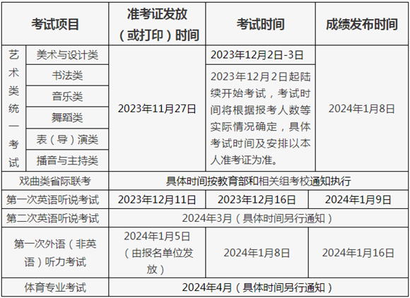 (?2024q普通高{学校招生艺术类专业l一考试、体育专业考试、英语听说考试、外?非英?听力考试报名与高考报名同期进行,W合条g拟报名参加相兌试的考生选报相关目q缴贏V部分考试的时间安排见附g2?/span>