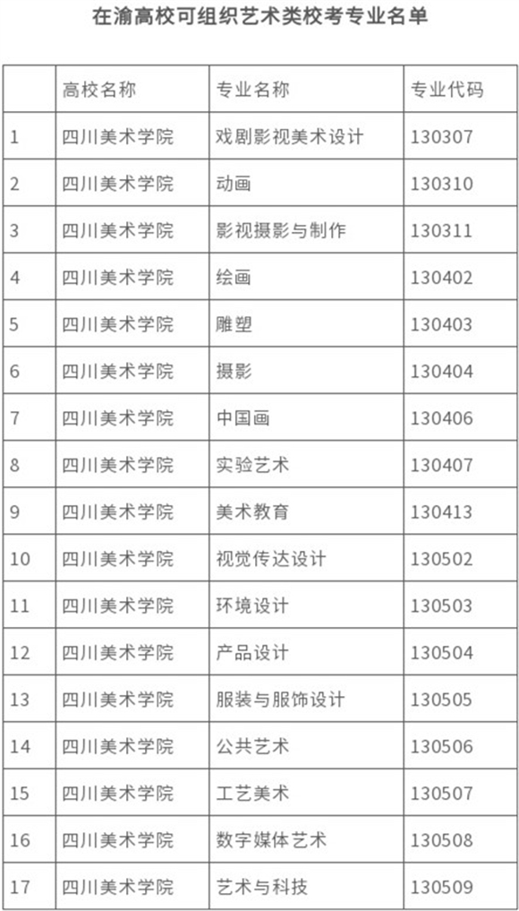 鏃ュ墠錛岄噸搴嗗競鏁欏鍙戝竷銆婂湪娓濋珮鏍″彲緇勭粐鑹烘湳綾繪牎鑰冧笓涓氬悕鍗曘嬶紝鏄庣‘鍥涘窛緹庢湳瀛﹂櫌鍙牎鑰冪殑涓撲笟鏈?7涓?/span>