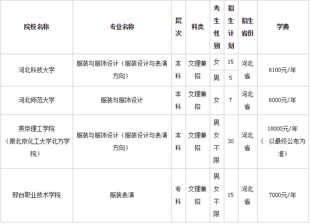 沛_U技大学2016q服装设计与表演cM业测试是由河北科技大学、河北师范大学、燕京理工学?原北京化工大学北方学?、邢台职业技术学院联合组l,试成W四所院校共同使用Q作?016q河北省高考通过的依据?