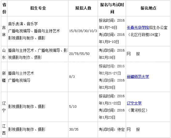 长春光华学院2016q艺术类专业校考时间表
