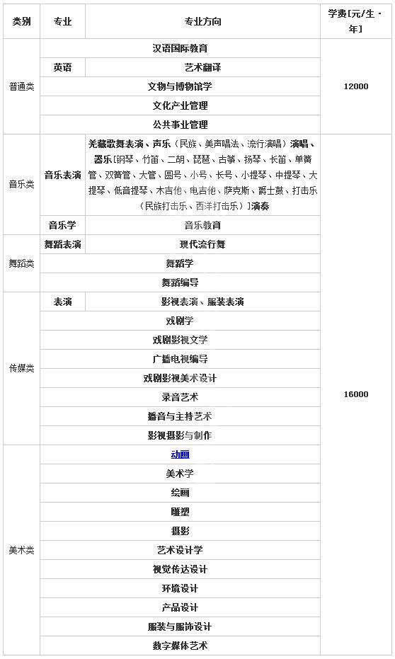 瀛︽牎浣滀負涓鎵鏂囧寲鑹烘湳綾婚櫌鏍★紝璁劇疆鏈夊涓笓涓氾紝娑電洊鑹烘湳瀛︺佹枃瀛︺佺鐞嗗鍜屽巻鍙插鍥涘ぇ瀛︾闂ㄧ被錛屾秹鍙婇煶涔愪笌鑸炶箞瀛︾被銆佹垙鍓т笌褰辮瀛︾被銆佺編鏈綾匯佽璁″綾匯佷腑鍥借璦鏂囧綾匯佸鍥借璦鏂囧綾匯佸伐鍟嗙鐞嗙被銆佸叕鍏辯鐞嗙被銆佸巻鍙插綾諱節澶т笓涓氱被銆傚鐢熷叆瀛﹀悗鍙牴鎹墍閫変慨鐨勪笉鍚屼笓涓氾紝緇忚繃緋葷粺鐨勪笓涓氬涔狅紝姣曚笟鍚庡彲鍒嗗埆浠庝簨闊充箰銆佽垶韞堟暀鑲蹭笌琛ㄦ紨宸ヤ綔;浠庝簨鎴忓墽褰辮銆佹湇瑁呰〃婕斻佸墽鏈垱浣溿佸箍鎾數瑙嗙紪瀵箋佹垙鍓у獎瑙嗙編鏈璁″強褰曢煶銆佸獎瑙嗘憚褰辨憚鍍忎笌鍒朵綔銆佹挱闊充富鎸佷互鍙婂獎瑙嗙伅鍏夌瓑宸ヤ綔;浠庝簨緹庢湳鏁欒偛銆佺粯鐢匯佹憚褰便侀洉濉戠瓑宸ヤ綔;浠庝簨瑙嗚浼犺揪璁捐銆佺幆澧冭璁°佷駭鍝佽璁°佹湇瑁呬笌鏈嶉グ璁捐鍜屾暟瀛楀獟浣撹壓鏈瓑宸ヤ綔;浠庝簨涓庤壓鏈湁鍏崇殑瀵瑰姹夎銆佽嫳璇炕璇戙佹枃鍖栧垱鎰忎駭涓氬強鍏叡浜嬩笟綆$悊宸ヤ綔;浠庝簨鑹烘湳鐞嗚鏁欒偛鐮旂┒銆侀潪鐗╄川鏂囧寲閬椾駭淇濇姢鍙婁紶緇熺編鏈被鐨勭戶鎵夸笌鍙戞壃宸ヤ綔銆?