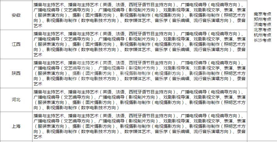(?报考播音与L艺术(p、法语、西班牙语节目主持方?、广播电视编?p制片方向)、媄视摄׃制作(电视摄媄方向)、媄视摄׃制作(数字电媄技术方?和表?服装表演方向)五个专业及招考方向的考生Q仅限独立考点(南京、郑州、哈滨、济南和深圳)报考?