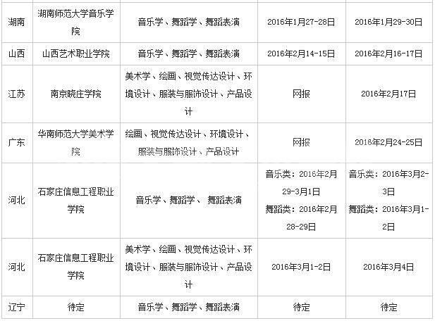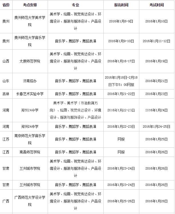 南师范大学2016q省外艺术设Ҏ考时间安排表