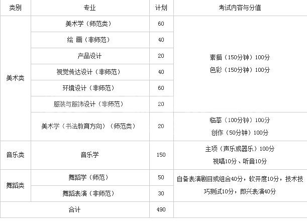 2016qv南师范大学艺术类招生计划、考试U目及其分?