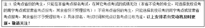 (涓)鎴戞牎鑰冪偣璁懼湪騫胯タ銆佹箹鍗椼佹箹鍖椼佸箍涓溿佹渤鍗椼佹睙瑗褲佸北涓溿佹睙鑻忋佸北瑗褲佹渤鍖椼佸畨寰姐佺敇鑲冦佹禉姹熴侀噸搴嗐佺寤恒侀粦榫欐睙絳?6涓渷銆傝鑰冪偣鐪佷喚鐨勮冪敓錛屽彧鑳藉湪鏈渷鑰冪偣鎶ュ悕鑰冭瘯錛屽湪鍏跺畠鑰冪偣鑰冭瘯鐨勬垚緇╂棤鏁?鏈渷涓嶈鑰冪殑涓撲笟錛屽彲閫夋嫨鎴戞牎璁捐冪殑鍗楀畞鑰冪偣鎴栫敇鑲冪渷鑰冪偣鎶ヨ冿紝鍏朵綑鐪佷喚涓嶅彈鐞嗘姤鑰?銆備笉璁捐冪偣鐪佷喚鐨勮冪敓錛屽彧鑳介夋嫨鎴戞牎璁捐冪殑鍗楀畞鑰冪偣鎴栫敇鑲冪渷鑰冪偣鎶ヨ冿紝鍏朵綑鐪佷喚涓嶄簣鍙楃悊鎶ヨ冦?