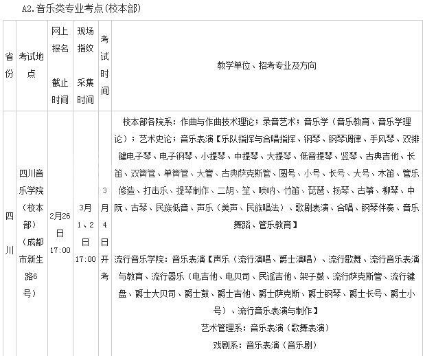 ?凡报考我院作曲与作曲技术理论、乐队指挥与合唱指挥、录韌术、音乐学(音乐学理?、艺术史Z个专业的省外考生必须到校本部考点参加专业报名考试?