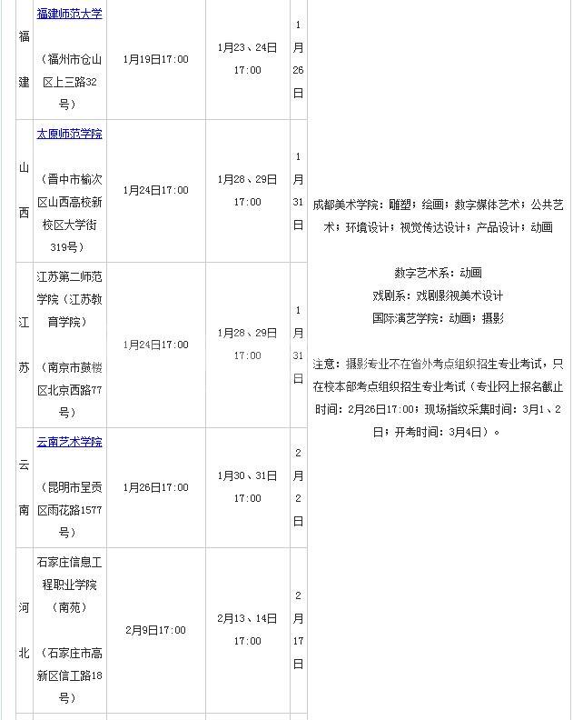 我院所讄各类专业报考点考试地点、网上报名截止时间、现场指Uw集时间、考试旉及报考注意事等情况详见以下各表?