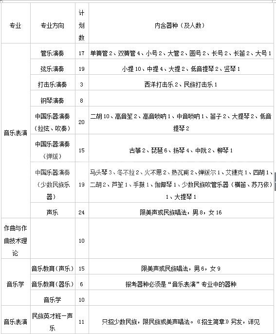 音乐表演专业(含全国班、民族英才班C、器乐方?