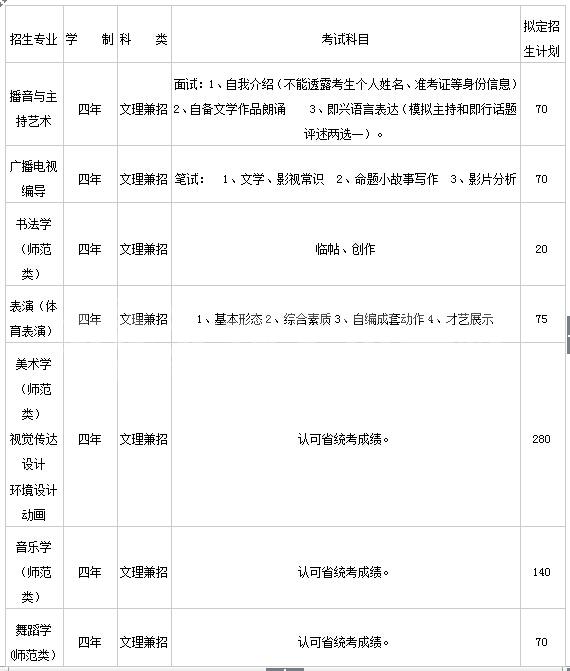 1、我校艺术类专业文理兼收Q考生需参加全国普通高{学校招生考试。各专业分省分科c???招生计划在专业成l公布后、考生填报高考志愿前予以公布?