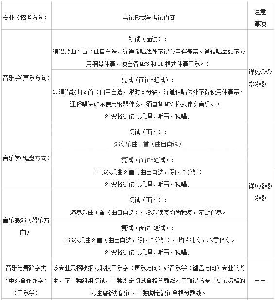 注:报考音乐学(C方向)、音乐学(键盘方向)的考生如兼报音乐与舞蹈学类(中外合作办学)(音乐?专业Q天z考点考生可在音乐cM业初试网上报名时填报Q青岛考点考生可在音乐cM业初试现场填报?