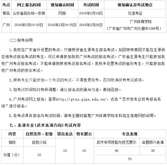 ?:2016q广州体育学院表?武术表演)专业报名考试安排
