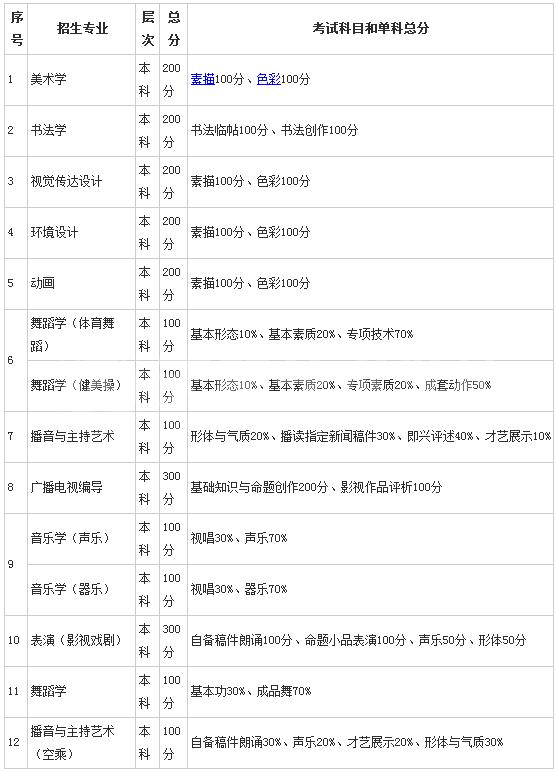 (1)音乐学、表演、舞y学、美术学、书法学(注:除江西省计划之外)、视觉传达设计、环境设计、动甅R播音与L艺术、播音与L艺术(IZ)、广播电视编对{舞y学(体育舞蹈)、舞y学(健美?各专业通过Q考生在达到生源省划定的最低文化控制线和专业统考合格的基础上,按校考专业成l从高分C分依ơ通过;通过招生计划中排序最后一名的考生Q若遇专业分数相同则按文化成l从高分C分依ơ通过;若文化成l还相同Q则按考生语文、数学、外语三门成l依ơ从高分C分通过。其中,播音与主持艺术专业考生原则上女生n高不低于160cmQ男生n高不低于170cm?