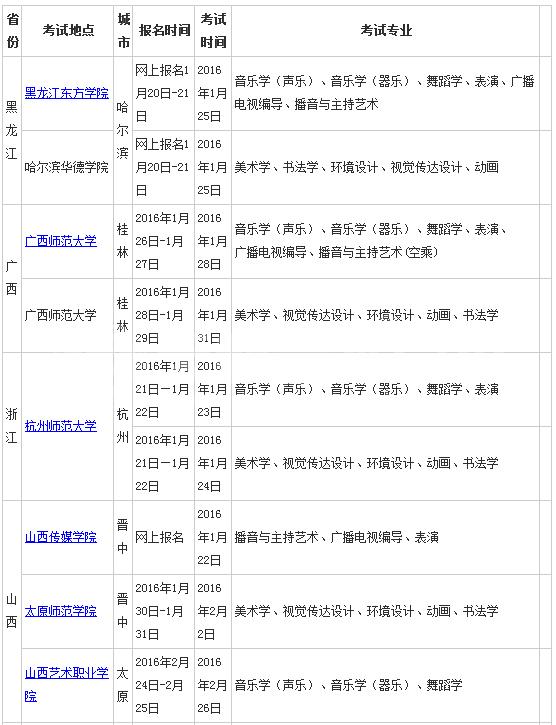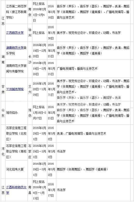 上饶师范学院2016q各省艺术类招生考试旉安排?/strong>