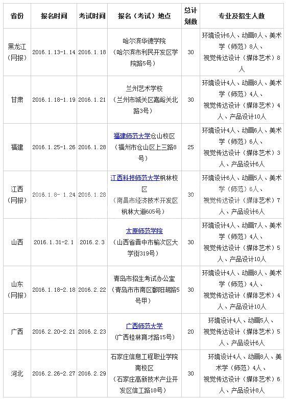 2016q外省美术类专业全部采用校考成l通过Q计划在黑龙江、甘肃、福建、江ѝ山ѝ山东、广ѝ河北等8个省(自治?讄校?见下?Q招生计划以各省(自治?招生ȝ部门公布为准?