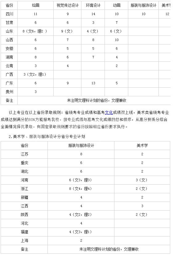 参加所在省份的相应专业cd的省U统考,l画、视觉传达设计、环境设计、动甅R服装与服饰设计(四川?、美术学(四川?专业省l考成l达到满分的80%方能报考我?有固定通过规则要求的省份按照相应省份的要求执行)Q美术学(四川省除?、服装与服饰设计(四川省除?专业省l考专业成l达到相xơ控制线方能报考?