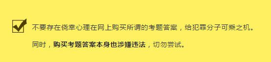 不要存在侥幸心理在网上购买所谓的考题{案Q给犯罪分子可乘之机。同Ӟ购买考题{案本n也涉嫌违法,切勿试?