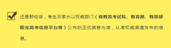 q是那句话,考生及家长以权威部门(省教育考试院、教育部、教育部阛_高考信息^台等)公布的正式信息ؓ准,认准权威渠道发布的信息?
