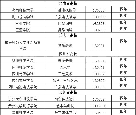 2016q全国院校新增艺术专业名单汇总(三)